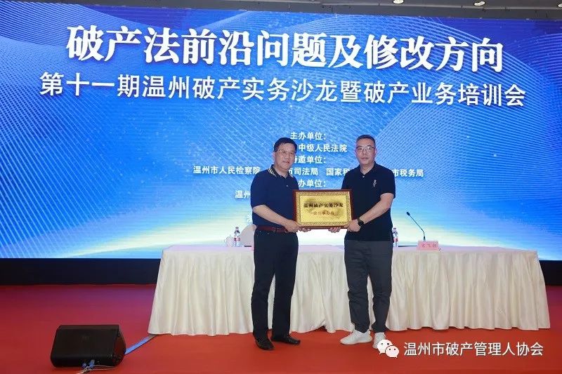 最后,溫州市破產管理人協會會長周光與浙江六和(溫州)律師事務所進行了第十二屆溫州破產實務沙龍承辦方授牌儀式。